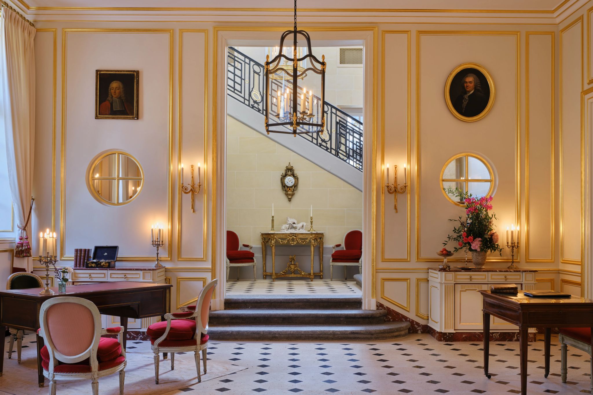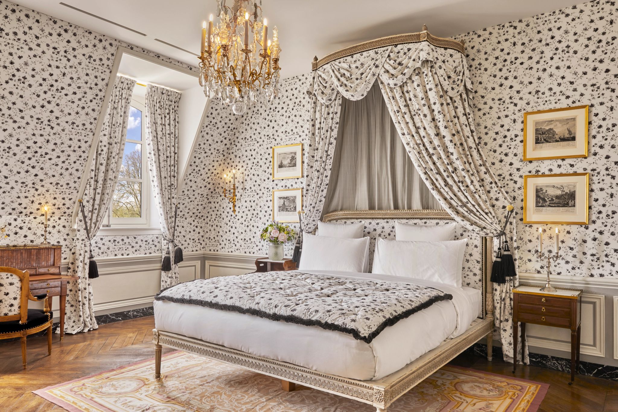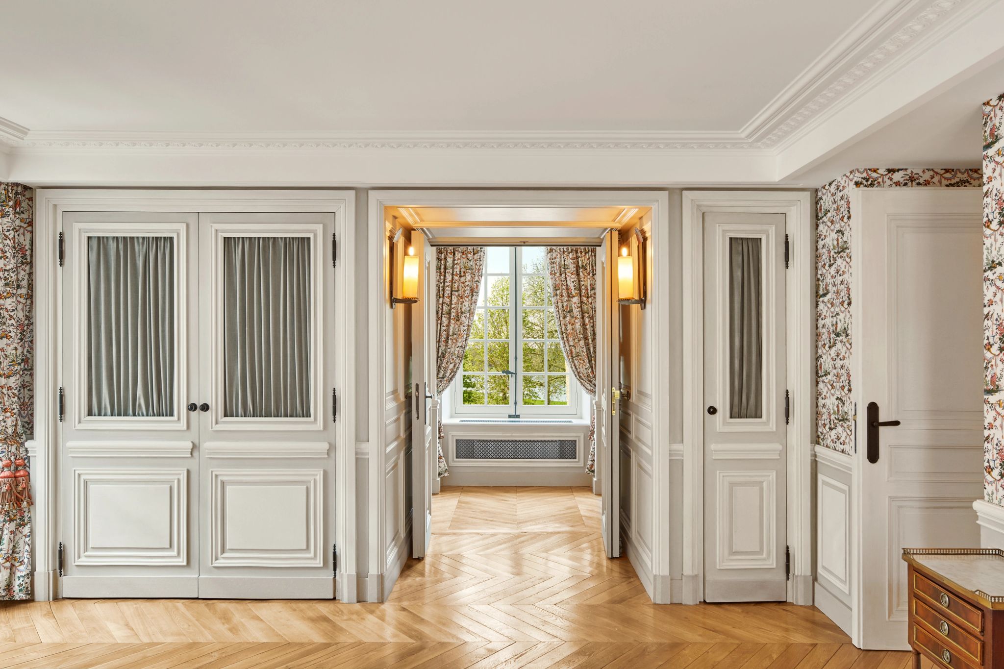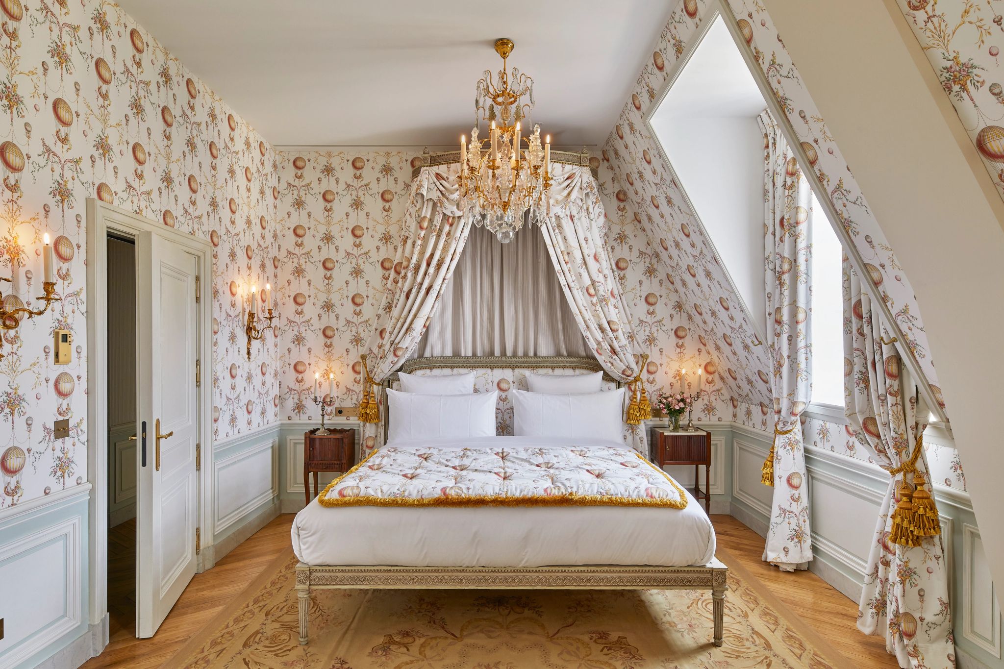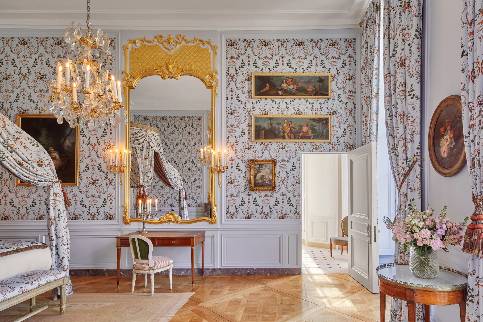 Como um palácio secreto de Maria Antonieta, a Madame de Staël Suite revela a elegância e o glamour da corte francesa. A vista do jardim emoldura este ambiente distinto. Tapeçarias e cortinas com motivos inspirados no Petit Trianon, lustres de cristal do século 18 enriquecem a decoração.