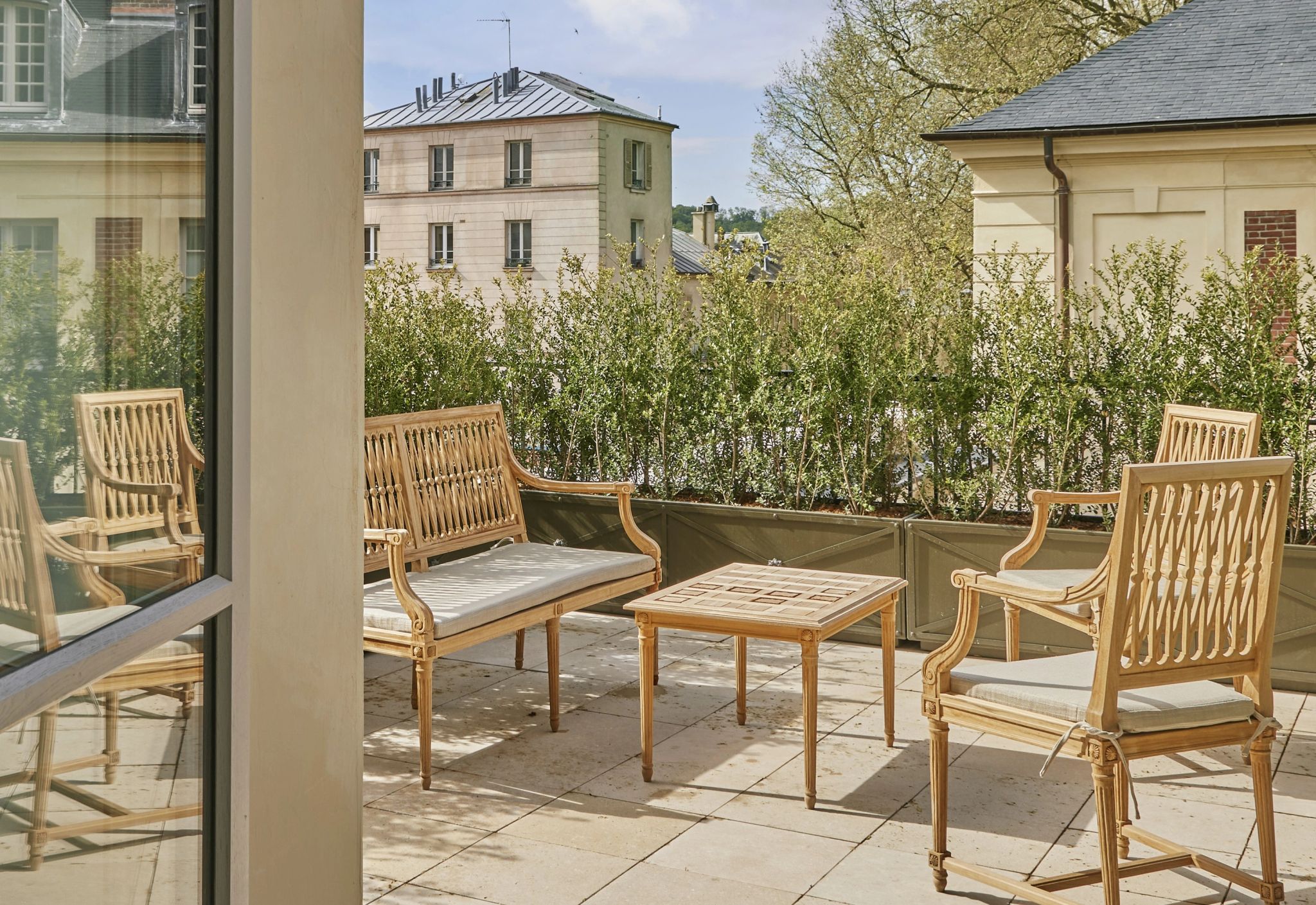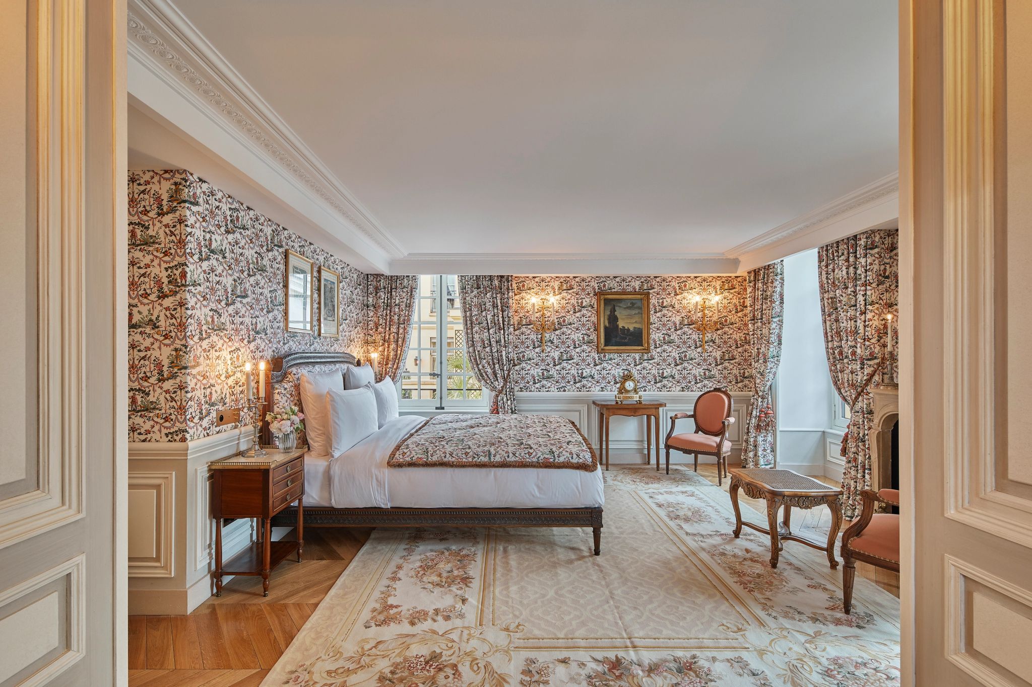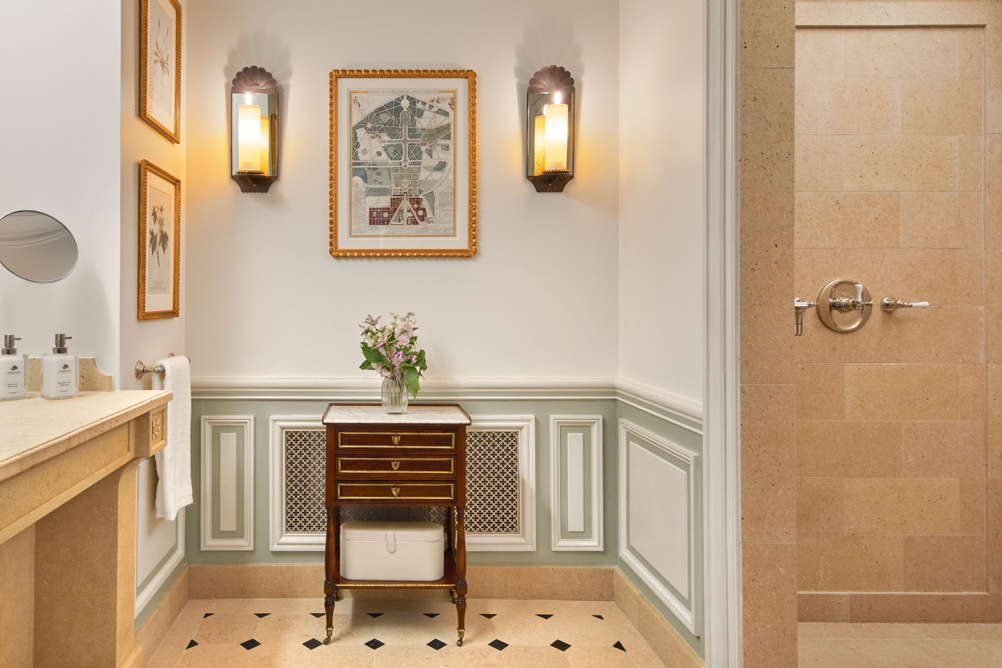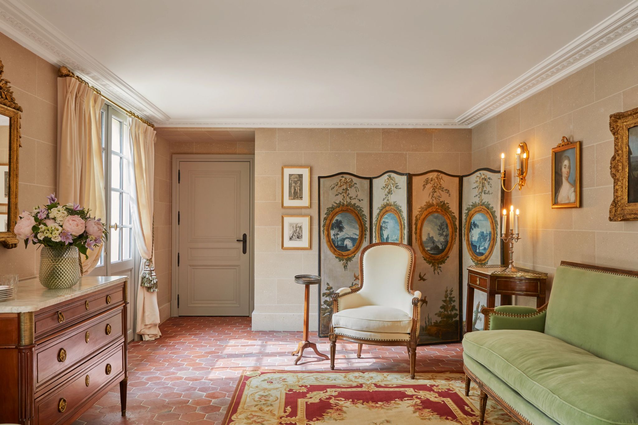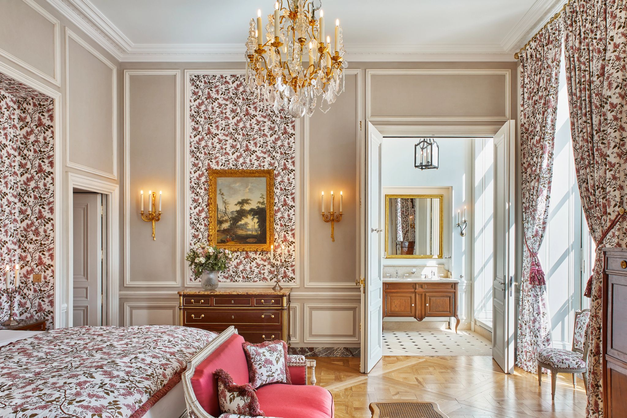 Como um palácio secreto de Maria Antonieta, a Madame de Staël Suite revela a elegância e o glamour da corte francesa. A vista do jardim emoldura este ambiente distinto. Tapeçarias e cortinas com motivos inspirados no Petit Trianon, lustres de cristal do século 18 enriquecem a decoração.