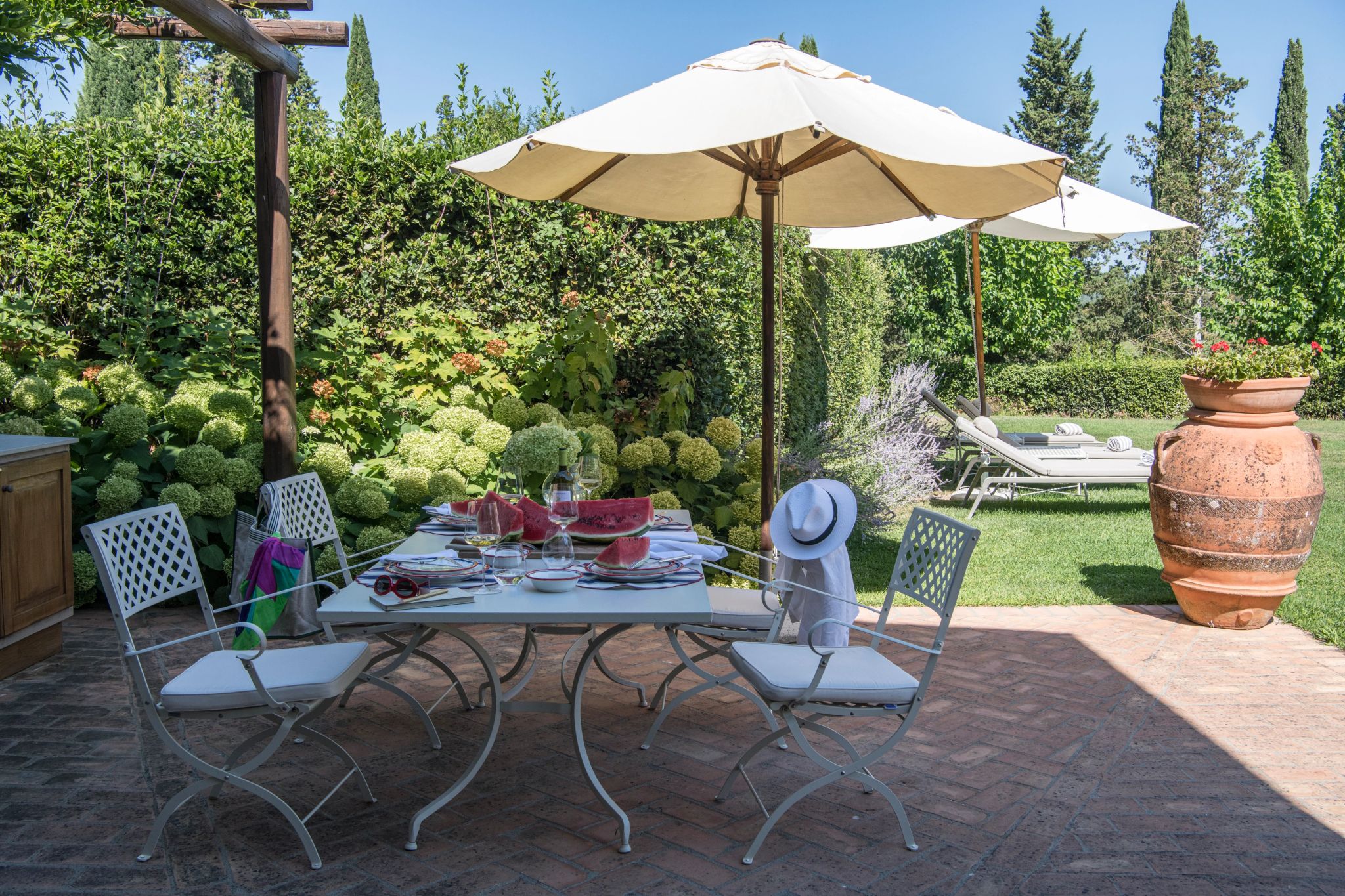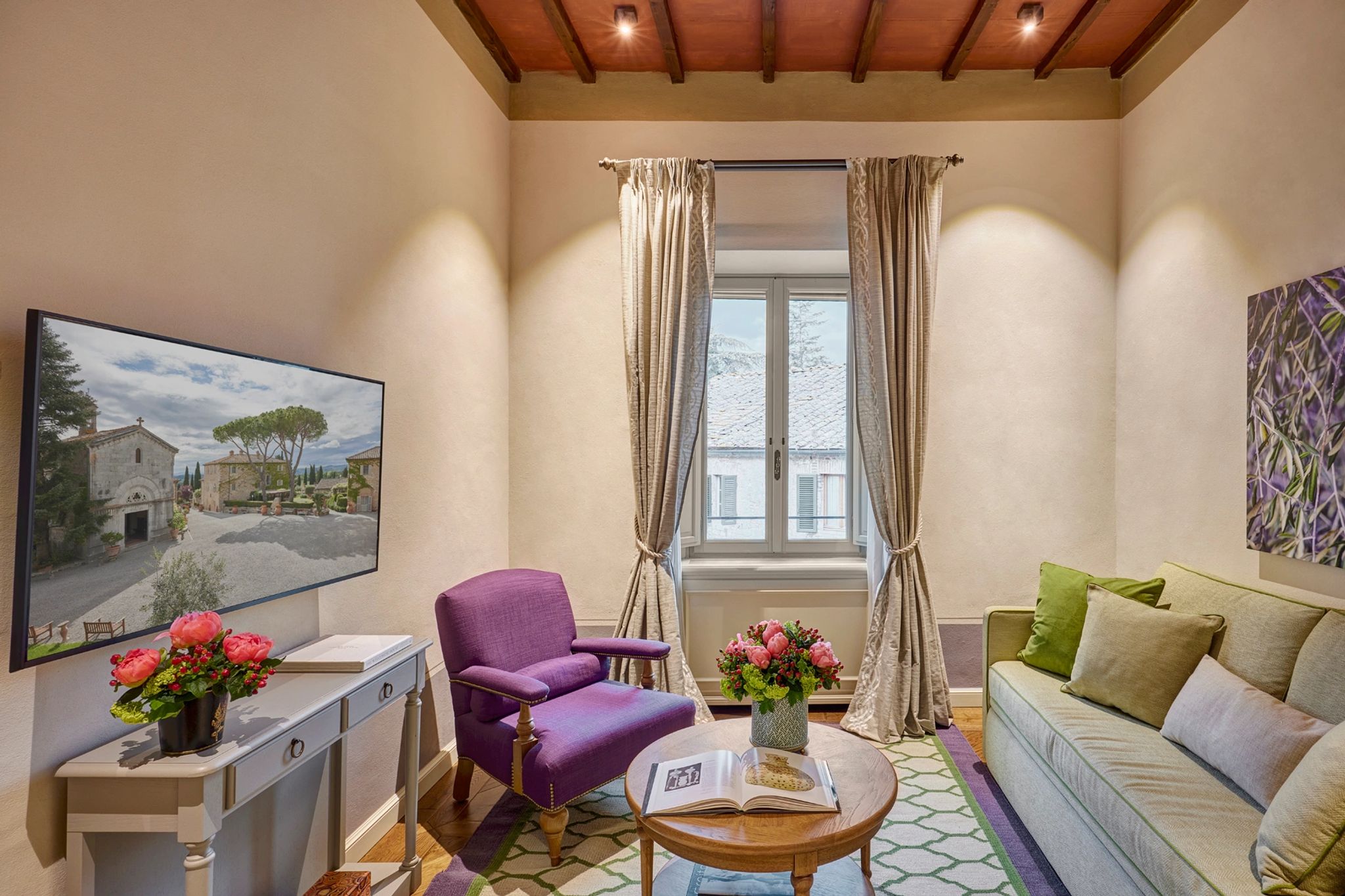 O encanto da Signature Suite La Legnaia reside em seu jardim privativo, perfeito para refeições ao ar livre rodeadas por natureza. Situada ao norte, esta suíte duplex possui uma ampla sala de estar no térreo, um quarto com cama king-size no andar superior e dois banheiros em cerâmica italiana.