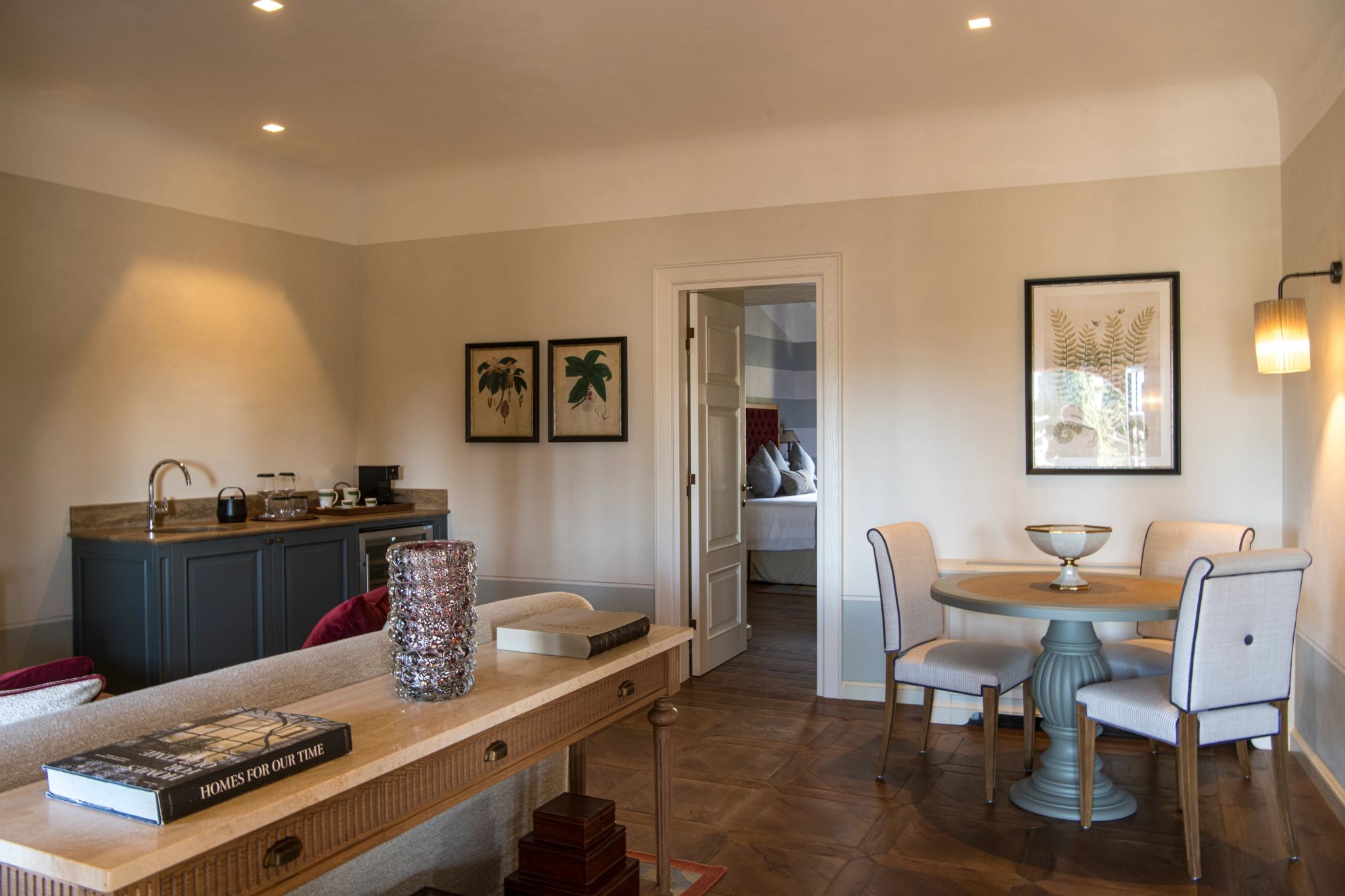 Composta por dois quartos king-size, cada um com seu próprio banheiro privativo, a Signature Suite L’Uliveta convida a um conforto refinado. A sala de estar, adornada com móveis e tecidos em tons naturais, completa o ambiente com uma atmosfera de tranquilidade e charme.