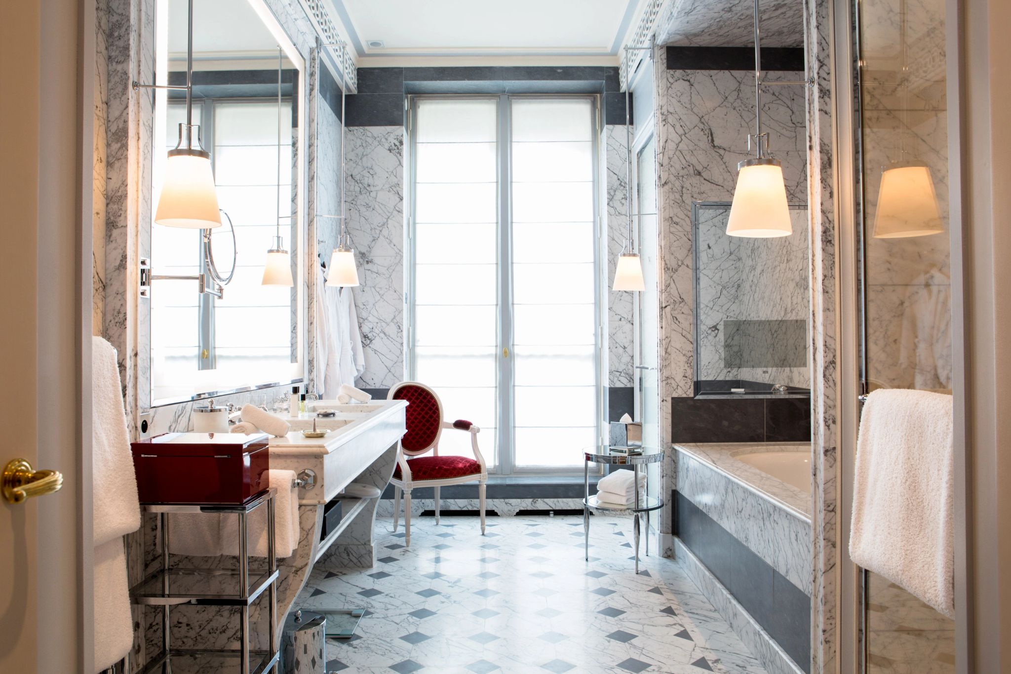 A Grand Palais Suite encanta com seus amplos espaços elegantemente decorados que incluem dois quartos king-size. Sua decoração reflete a arte de viver parisiense, com móveis autênticos de Napoleão III e antiguidades raras. A vista do Grand Palais e da Torre Eiffel complementam essa experiência tipicamente francesa.