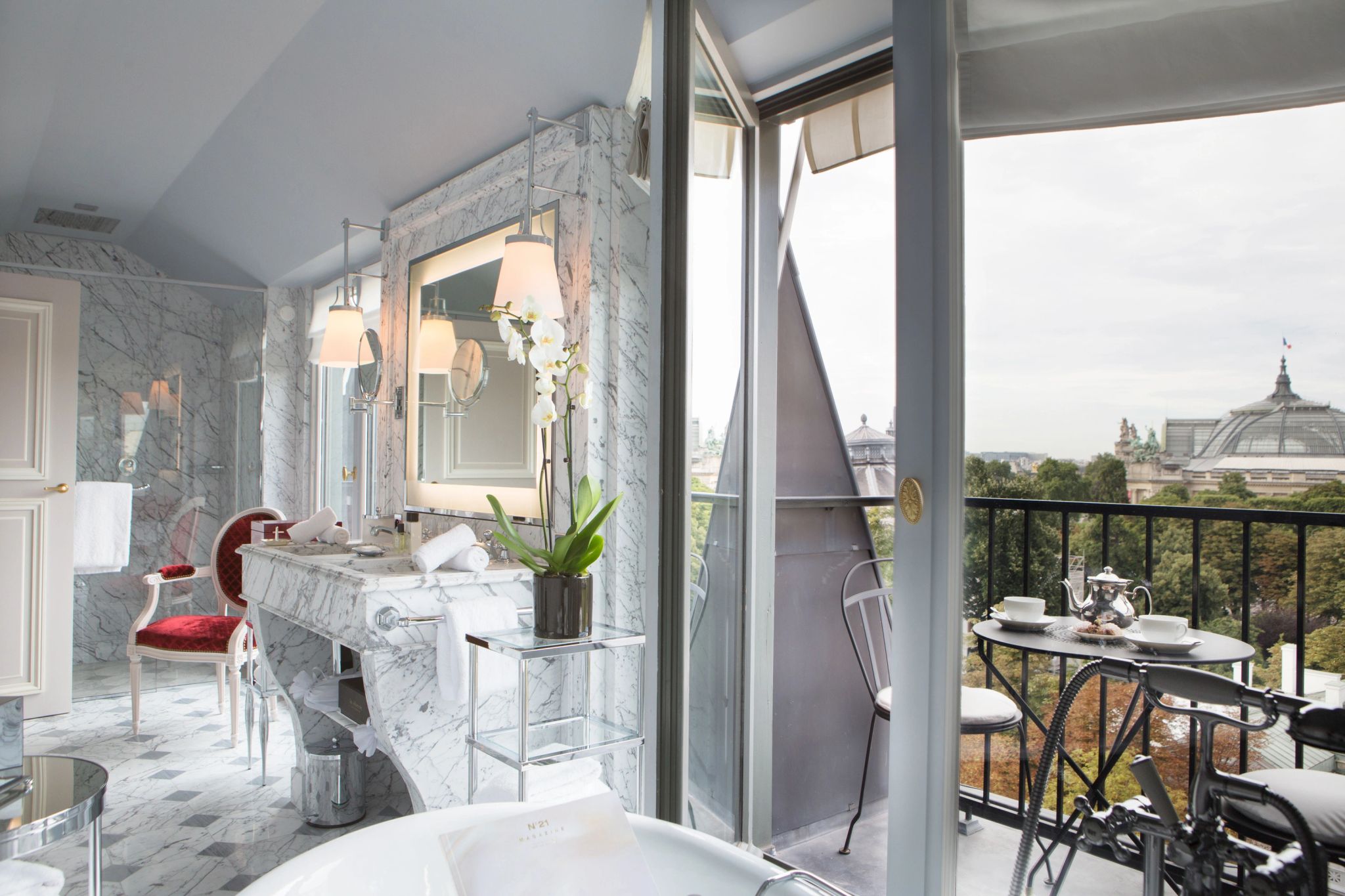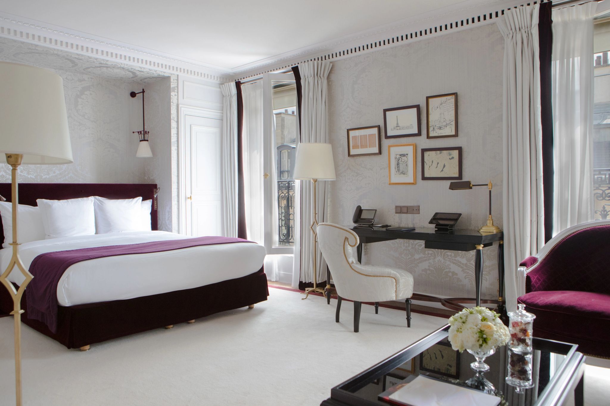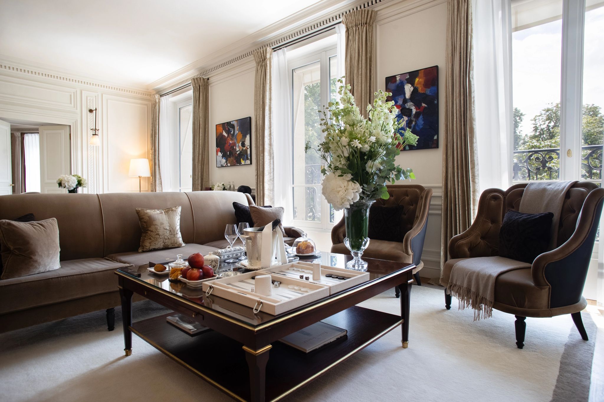 Nos pisos superiores do hotel, a Elysée Suite permite admirar cada detalhe de Paris, em especial para importantes pontos turísticos como a Torre Eiffel e o Grand Palais. O interior apresenta uma decoração elegante com tons de vinho, obras de arte e pisos de madeira que trazem uma elegância típica francesa ao ambiente. Seu charme adicional são seus dois bares privativos abastecidos com vinhos finos.