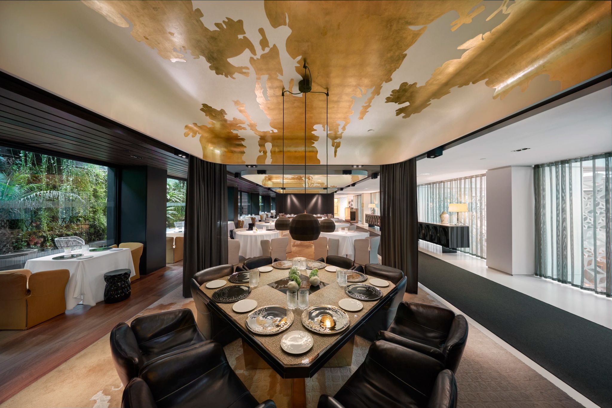 A Premier Terrace Suite enquadra vistas fascinantes do jardim Mimosa e cria um oásis na cidade. Seu design contemporâneo, com toques orientais, transmite uma sofisticação suave e uma sensação de tranquilidade.