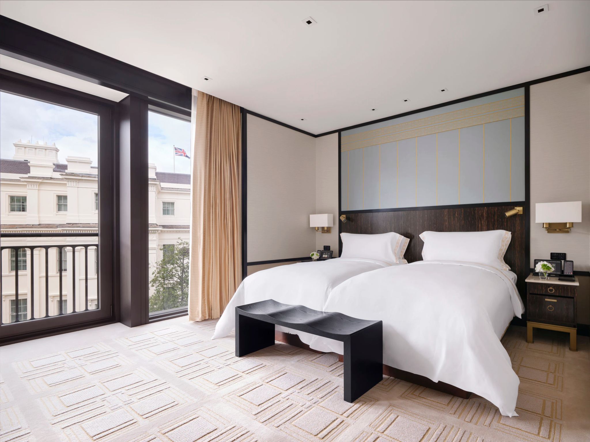 Ao abrir as cortinas do Premier Twin um espetáculo urbano se forma em perfeita harmonia com a atmosfera serena do quarto. A vista para a histórica Grosvenor Crescent e Halkin Street convida a um diálogo entre a vibração da cidade e a tranquilidade deste refúgio.