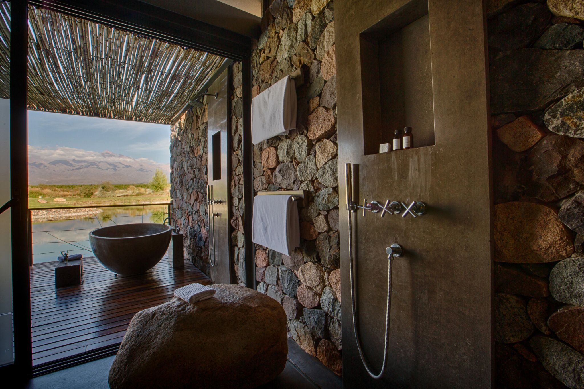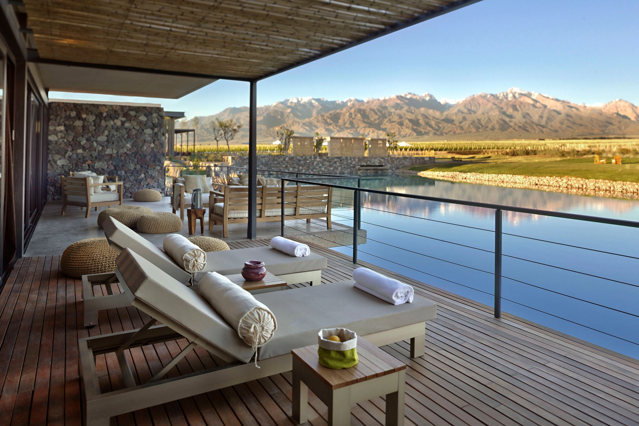 No coração de Mendoza, essas vilas se debruçam sobre vistas serenas do lago. Os interiores aconchegantes, com decoração elegante e toques rústicos, combinam perfeitamente com a beleza natural da região. Em cada entardecer, o sol se põe, e convida a momentos de relaxamento na banheira ao ar livre. Seu terraço privativo, com mobiliário confortável, é o lugar perfeito para refeições ao ar livre e momentos de convívio.
