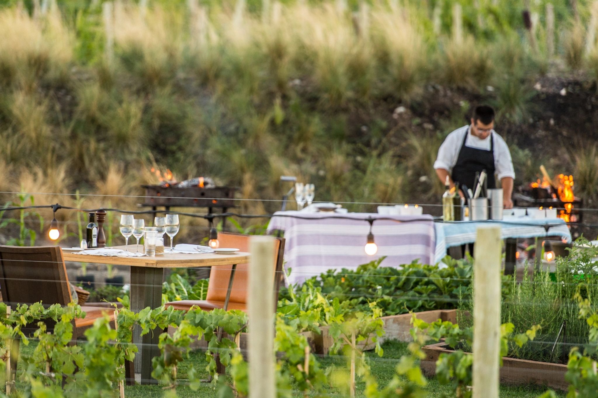 Siete Fuegos: culinária regional. Renomado chef Francis Mallmann. Técnicas de em fogo aberto de Mallmann. Ingredientes sazonais locais com premiada carta de vinhos. Almoço e jantar